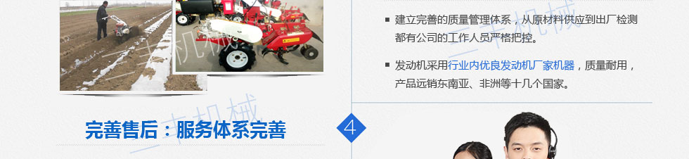 以質量占領市場的原則,更好地服務于客戶。本廠本著"誠信、務實、開拓、創新"的企業精神。所有產品均通過ISO9001:2008國際質量體系認證 ,公司以企業合作為主,大力拓展業務區域,從國內市場向海外市場發展。本公司涵蓋工程設計、施工總承包、工程運營、多功能 微耕機管理技術咨詢四大板塊。